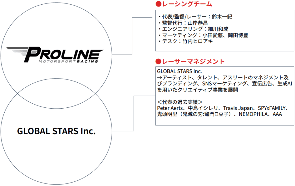 | 運営会社 | 株式会社Proline Motorsport Racing 静岡県御殿場市印野1791-4 代表取締役 鈴木一 |